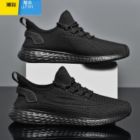 聚范男鞋2024新款男士休闲透气黑色跑步鞋子运动鞋工作干活网面鞋