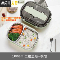 三维工匠学生饭盒304不绣钢带盖保温密封便当盒分格型带盖上班族专用餐盒 二格浅绿1000+餐具
