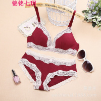 锦铭七玥女士无钢圈棉 文胸套装 薄款性感蕾丝内衣无痕三角杯