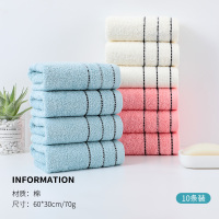 洁丽雅10条装成人家庭大人擦脸毛巾洗澡巾纯棉素色条纹缎档毛巾柔软吸水洗脸面巾