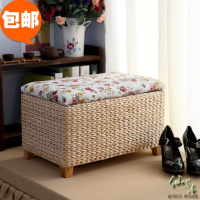 北欧田园草编收纳凳收纳箱换鞋凳储物凳穿鞋凳大码储物箱沙发凳子