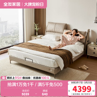 全友家居现代简约真皮软包床屏2024新款主卧高端大气双人床