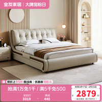 全友家居真皮床现代简约头层牛皮主卧大床分段靠包双人床皮艺床