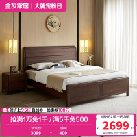 全友家居新中式卧室家具实木床宽大床靠储物高箱床双人大床