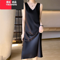 YIBUSHENG醋酸缎面吊带裙女季外穿无袖内搭显瘦a字裙黑色长款过膝连衣裙