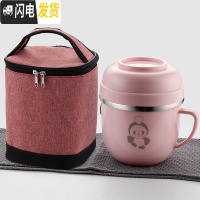 三维工匠304不锈钢饭盒保温大容量带盖便当盒儿童学生男双层泡面碗快餐杯 粉色餐杯1个(鸡)+红色袋子