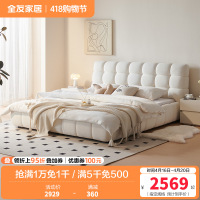 全友家居奶油风泡芙软包大床2024新款主卧室落地双人布艺床
