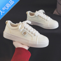 SUNTEK韩版东大门帆布鞋女春秋新款圆头运动风百搭系带平底低帮白色单鞋