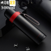 三维工匠保温杯大容量男女简约水杯不锈钢户外学生便携儿童杯子500 磨砂黑色500(送杯套杯刷)