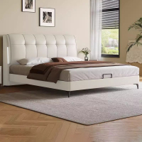皮床简约大气主卧室大床轻奢