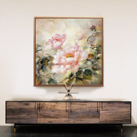 苏麻离青 牡丹现代中式油画挂画电表箱装饰画客厅餐厅玄关壁画