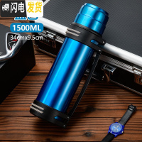 三维工匠保温壶大容量便携户外大号1.2 3旅行不锈钢保温杯家用女士便携 蓝色1500送背带无杯套