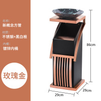 商用酒店大堂垃圾桶带烟灰缸不锈钢大理石商场电梯口 豪华 方管玫瑰金