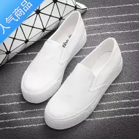 SUNTEK香港小白鞋布鞋厚底一脚蹬女鞋2023新款夏黑白色帆布鞋平底懒人鞋