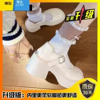 聚范白色粗跟高跟小皮鞋女2024新款厚底增高法式复古玛丽珍女鞋子
