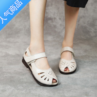 SUNTEK平底凉鞋女2023新款夏鱼嘴女鞋牛筋软底妈妈鞋休闲中老年奶奶白色