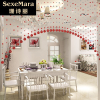 珊诗丽素手珠颜全32切面珠子拱形珠帘水晶隔断帘客厅弧形过道挂帘卧室玄关装饰帘大红+透明60条拱形帘长40-110cm