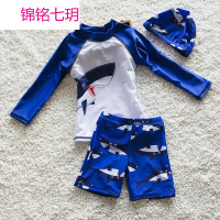 锦铭七玥男孩深蓝黑宽条纹可爱泳帽婴幼儿小中童儿童泳衣
