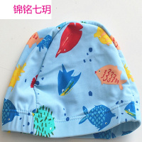 锦铭七玥男孩浅蓝底小彩鱼可爱卡通泳帽婴幼儿小中童儿童泳衣