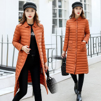 顺崇2017韩版新款过膝加长衬衫领轻薄纯色白鸭绒羽绒服女0607#