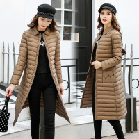 顺崇2017冬季新款过膝加长衬衫领轻薄纯色白鸭绒羽绒服女