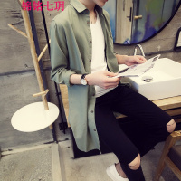 锦铭七玥长款衬衫男 春夏薄风衣外套韩版宽松棉麻色中长衬衫男士衬衣潮
