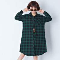 2017秋装新款大码女装中长衬衫欧美胖mm格子长袖连衣裙加肥加大墨绿色