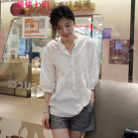 锦铭七玥0-1050韩国早秋新款女装立领套头宽松中袖娃娃衫中长衬衫女上衣