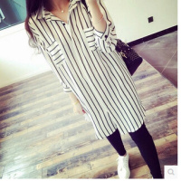 2017装新款宽松坠感韩国竖条纹大版雪纺长衬衫女衬衣