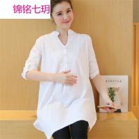 锦铭七玥新孕妇长袖领中长衬衫孕妇棉麻春秋韩版连衣裙