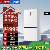 海尔(Haier)BCD-516WGHTDB9GPU1 516L超薄零嵌十字四开门电冰箱一级能效节能EPP除菌干湿分储