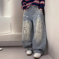 男童牛仔裤春秋款2026新款中大童裤子潮儿童春装洋气涂鸦长裤