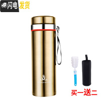 三维工匠保温杯大容量男士水杯真空不锈钢茶杯女户外便携壶杯子1000 香槟金800送杯套杯刷