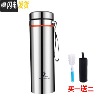 三维工匠保温杯大容量男士水杯真空不锈钢茶杯女户外便携壶杯子1000 银本色1000送杯套杯刷