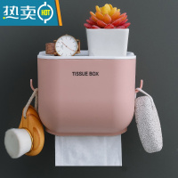 敬平卫生间纸巾盒厕所洗手间浴室卷纸筒收纳置物架家用免打孔卫生纸盒 浴室纸巾盒(粉色)小号