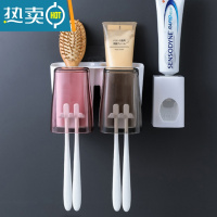 三维工匠卫生间牙刷架置物架免打孔刷牙杯套装牙具壁挂漱口杯挂墙式收纳架 三口之家-浅肉色(送个性表情杯)
