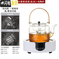 三维工匠玻璃蒸汽煮茶器耐热电陶炉烧水壶泡茶专用普洱长嘴提粱煮茶壶 CB56蒸煮壶(金龙)+圆款电陶炉茶具