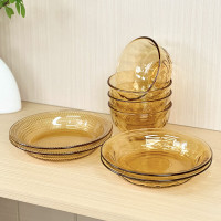 一禾亼物陶瓷家用创意碗盘餐具简约黑线竖纹整套田园风12头