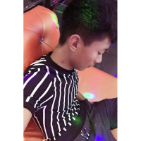 快手红人天佑同款秋修身紧身T恤长袖社会精神小伙圆领条纹短袖男