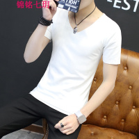 锦铭七玥夏季随心裁男士T恤 男紧身莫代尔无痕短袖男式色休闲V领薄款T恤