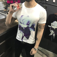 锦铭七玥紧身T恤男韩版圆领3D印花体恤衫2017夏装修身潮流男士短袖t桖衣服