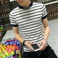 半袖社会小伙短袖男潮韩版日系修身个性紧身T恤男士小衫条纹体恤