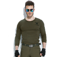 军装修身半袖体恤纯棉打底衫男短袖军绿圆领运动休闲长袖紧身T恤