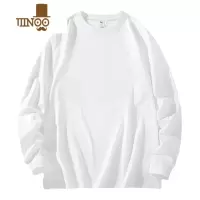 YANXU美式休闲340G长袖t恤男士宽松卫衣纯色白色打底衫