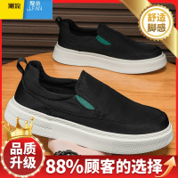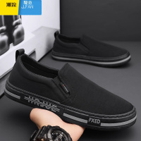 聚范工作男鞋秋季黑色帆布鞋软底防滑百搭男士一脚蹬运动休闲板鞋
