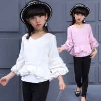 女童套装春季新款韩版中小童阔腿裤洋气公主风衬衫时尚两件套