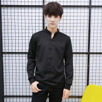 2017新款秋季男士长袖亚麻衬衫中国风盘扣复古中长款棉麻白衬衣中式男装潮