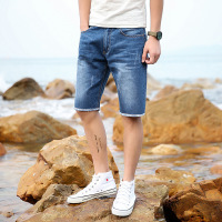 夏季薄款牛仔短裤男士5分马裤五分裤男裤子青少年毛边中裤FS9919图片色