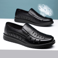 白色凉鞋夏季真皮日常休闲皮鞋男镂空透气凉皮鞋洞洞鞋中年爸爸鞋