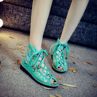 2017新款超轻鱼嘴串绳民族风手工缝纫刺绣布鞋女单鞋凉鞋夏靴老北京休闲鞋